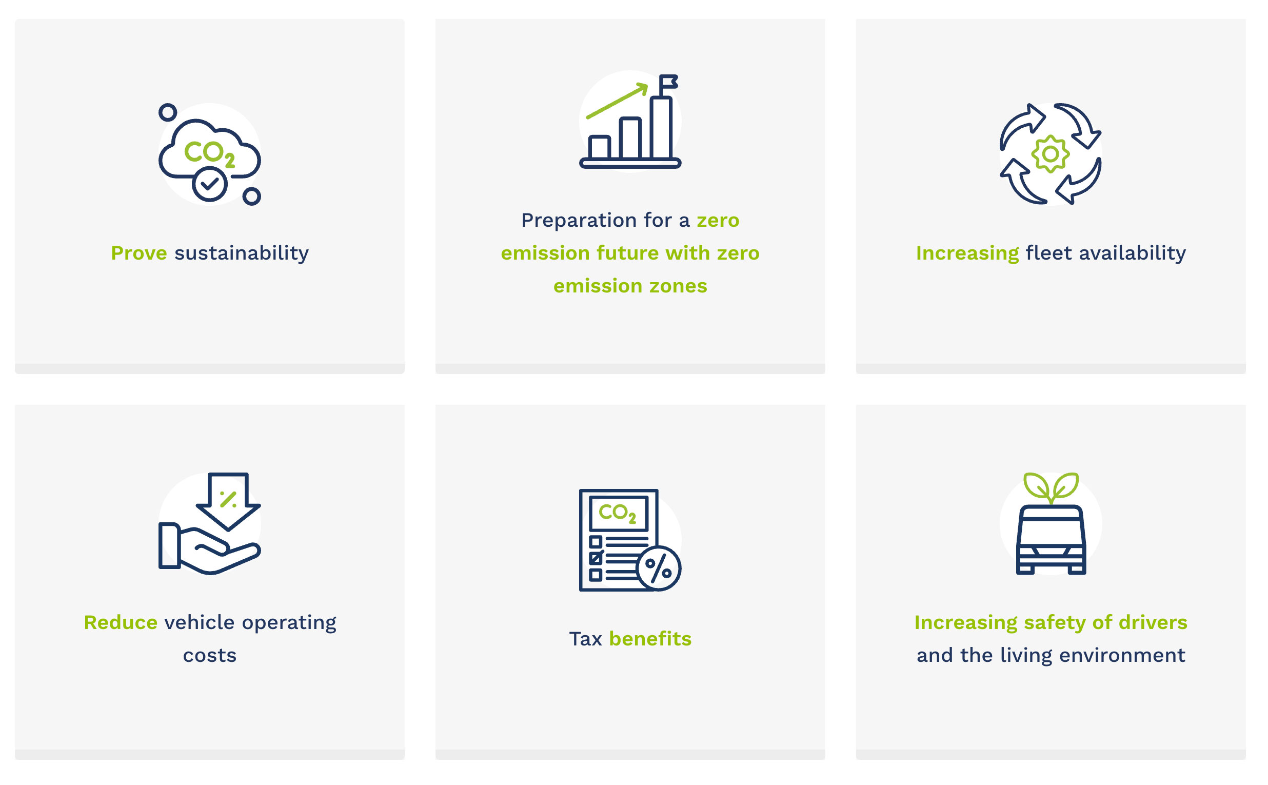 Driving zero emission is not only a different driving experience, the impact on the organization and the environment is significant. For customers, it means, for example, that you can meet changing (sustainable) requirements. It is easier to meet the requirements of the government. The logistics planning is changing. The management benefits from Co2 savings, for example in CSR reports. And so on.